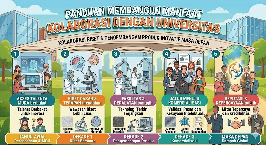 Menghadapi tantangan masa depan yang penuh ketidakpastian, kolaborasi antara dunia usaha dan universitas adalah jembatan emas menuju kemajuan. Sinergi ini menghilangkan sekat antara teori akademik yang sering dianggap terlalu abstrak dengan praktik industri yang terkadang terlalu pragmatis. Ketika kedua dunia ini bertemu, lahirlah inovasi yang tidak hanya canggih secara teknologi, tetapi juga relevan secara ekonomi dan bermanfaat bagi masyarakat luas. Perusahaan yang berani membuka diri untuk berkolaborasi dengan universitas akan memiliki fondasi yang lebih kokoh untuk memimpin perubahan di industrinya. Masa depan bukan milik mereka yang berjalan sendiri, melainkan milik mereka yang mampu membangun jaringan kerja sama yang cerdas dan berkelanjutan demi kemajuan bersama.