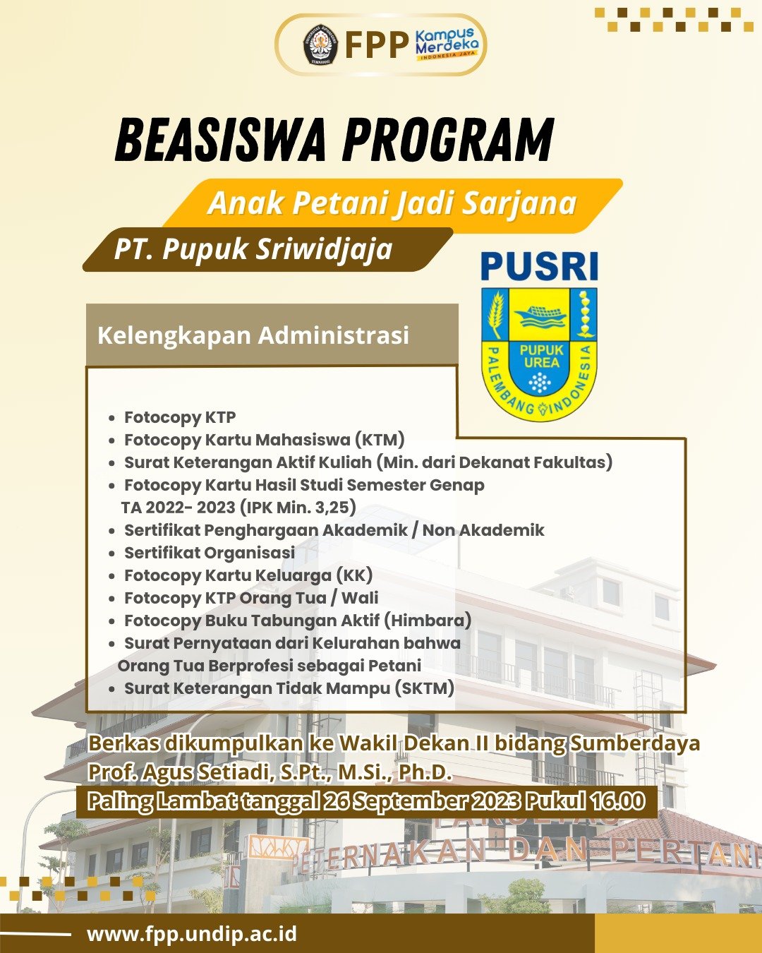 - Mahasiswa yang memiliki komitmen untuk berkontribusi dalam pengembangan pertanian setelah menyelesaikan studi.